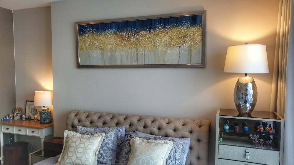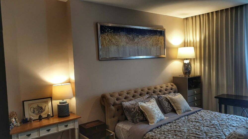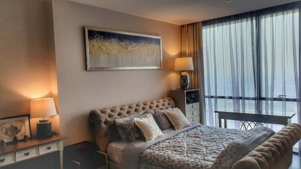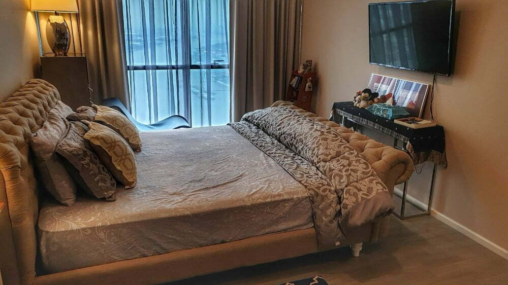 – เตียงนอนขนาด 6 ฟุตในห้องนอนใหญ่ พร้อมชุดเครื่องนอน